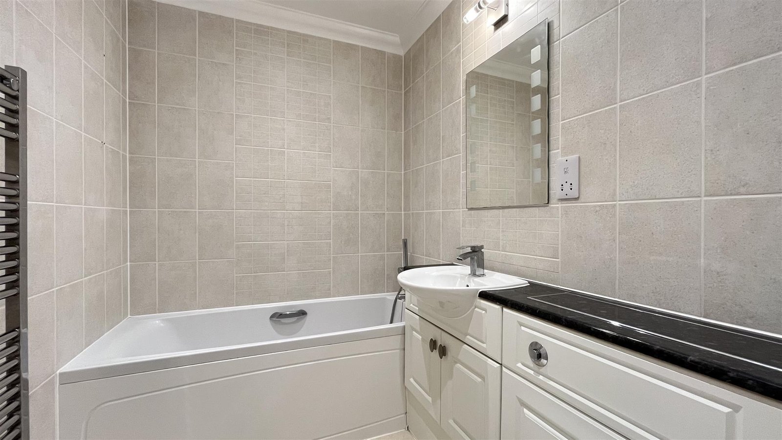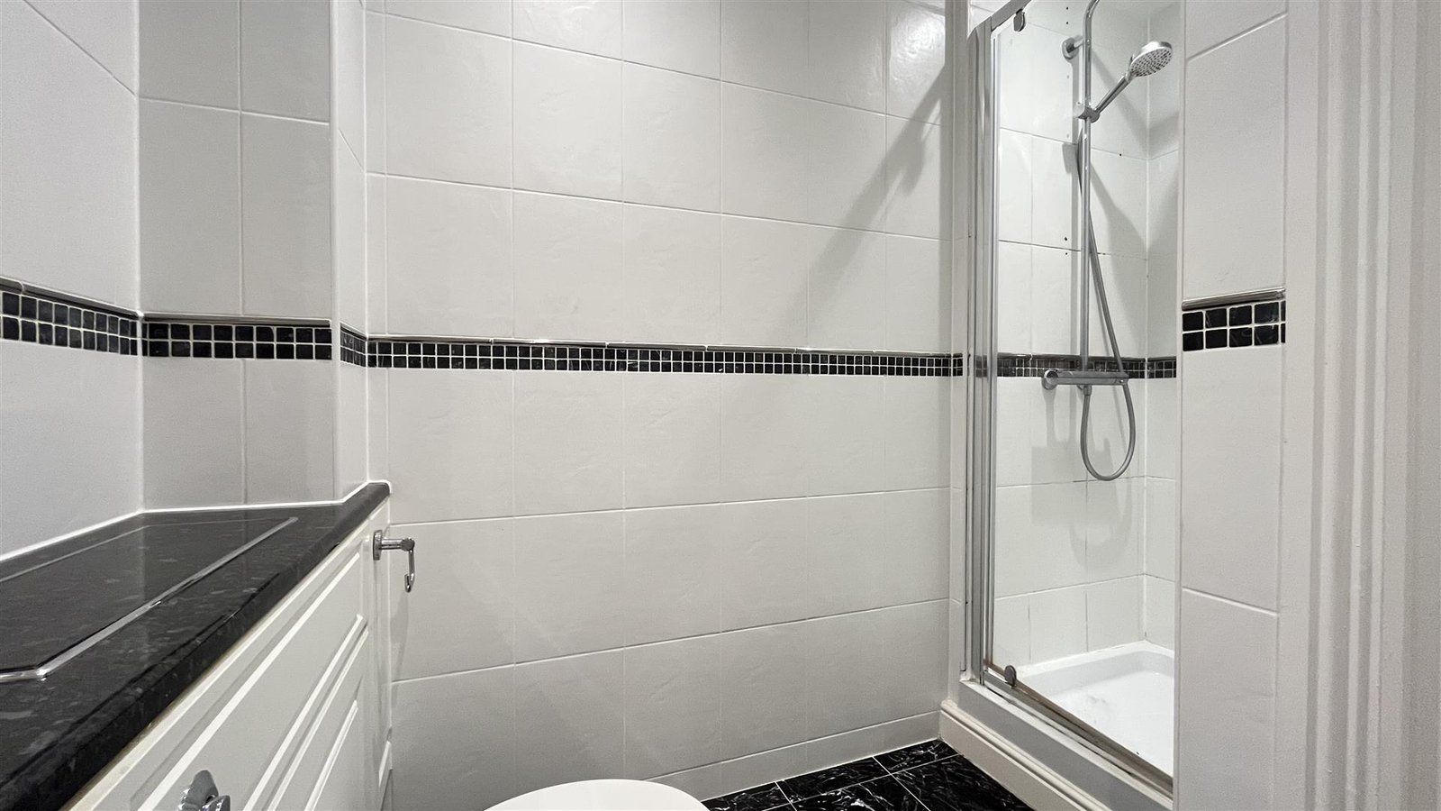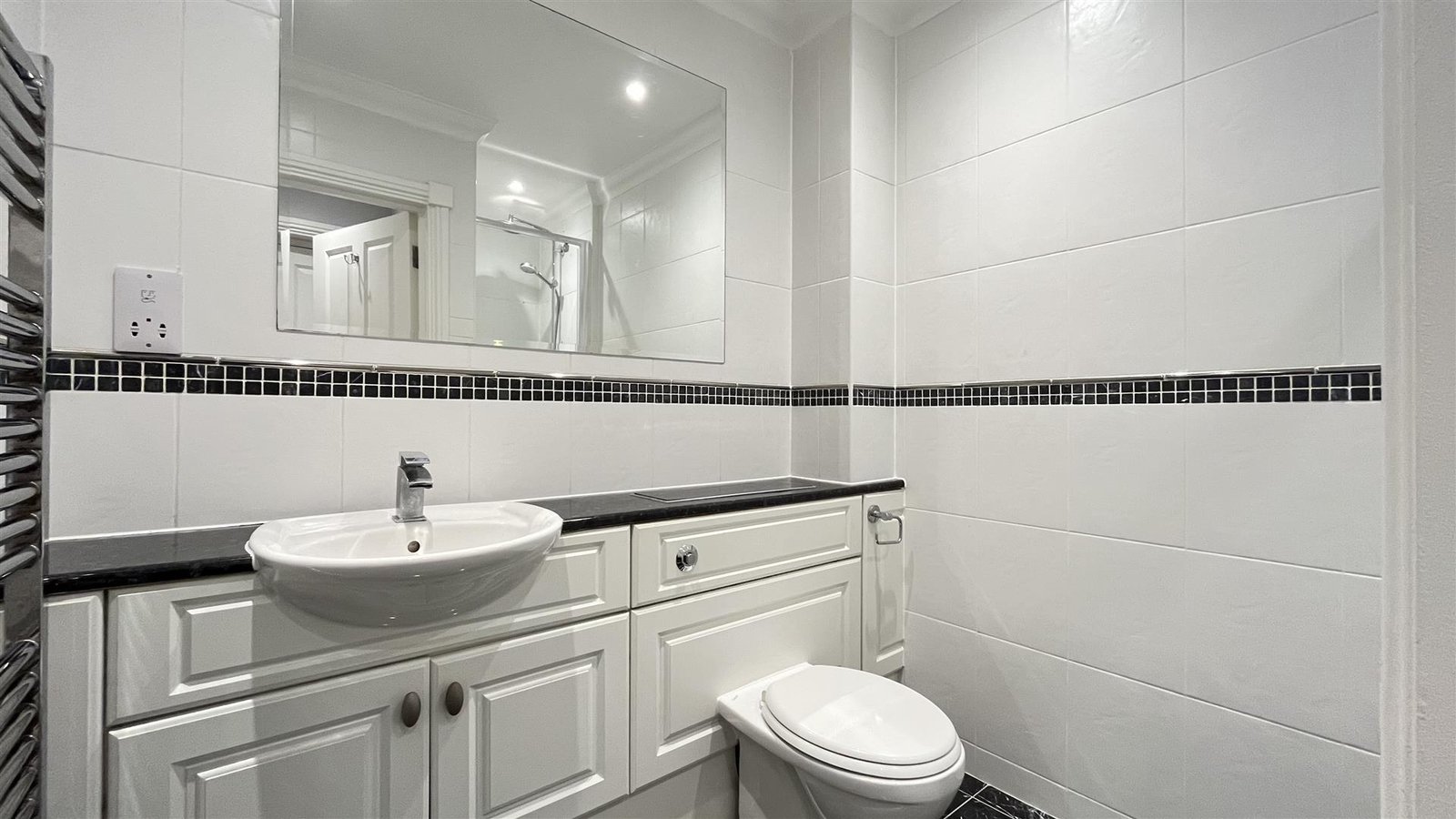 The apartment features two well-proportioned double bedrooms, one of which benefits from an en-suite bathroom, ensuring privacy and convenience. A separate family shower-room adds to the practicality of the layout, making it ideal for professionals.