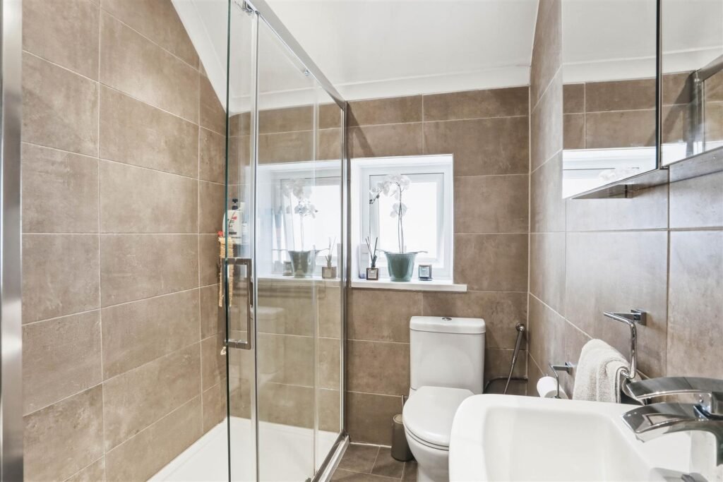 Upstairs, there are three well-proportioned bedrooms, including a principal suite with en-suite shower room and walk-in wardrobe. A modern family bathroom serves the remaining bedrooms.