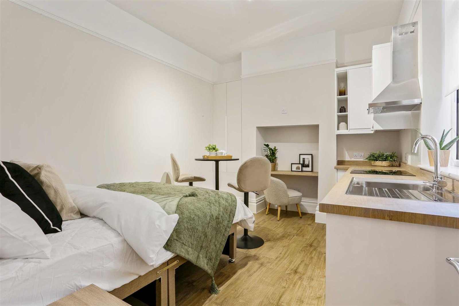The development caters for professionals, couples and students, this fully furnished studio combines contemporary style with practical living:
