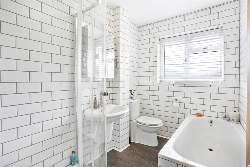 Upstairs, you will find a generously sized double bedroom, complete with ample fitted wardrobe space, ensuring that storage is never a concern. The stylish bathroom is a standout feature, boasting both a luxurious bathtub and a separate walk-in shower.