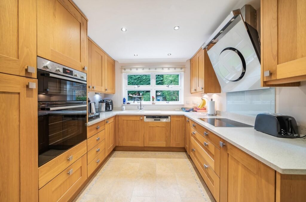 The contemporary fitted kitchen and breakfast room is designed for both functionality and style, complemented by a generous separate utility room that adds to the convenience of daily living.