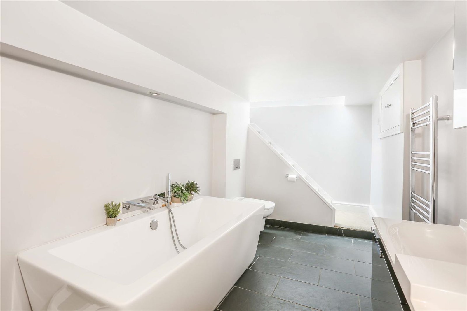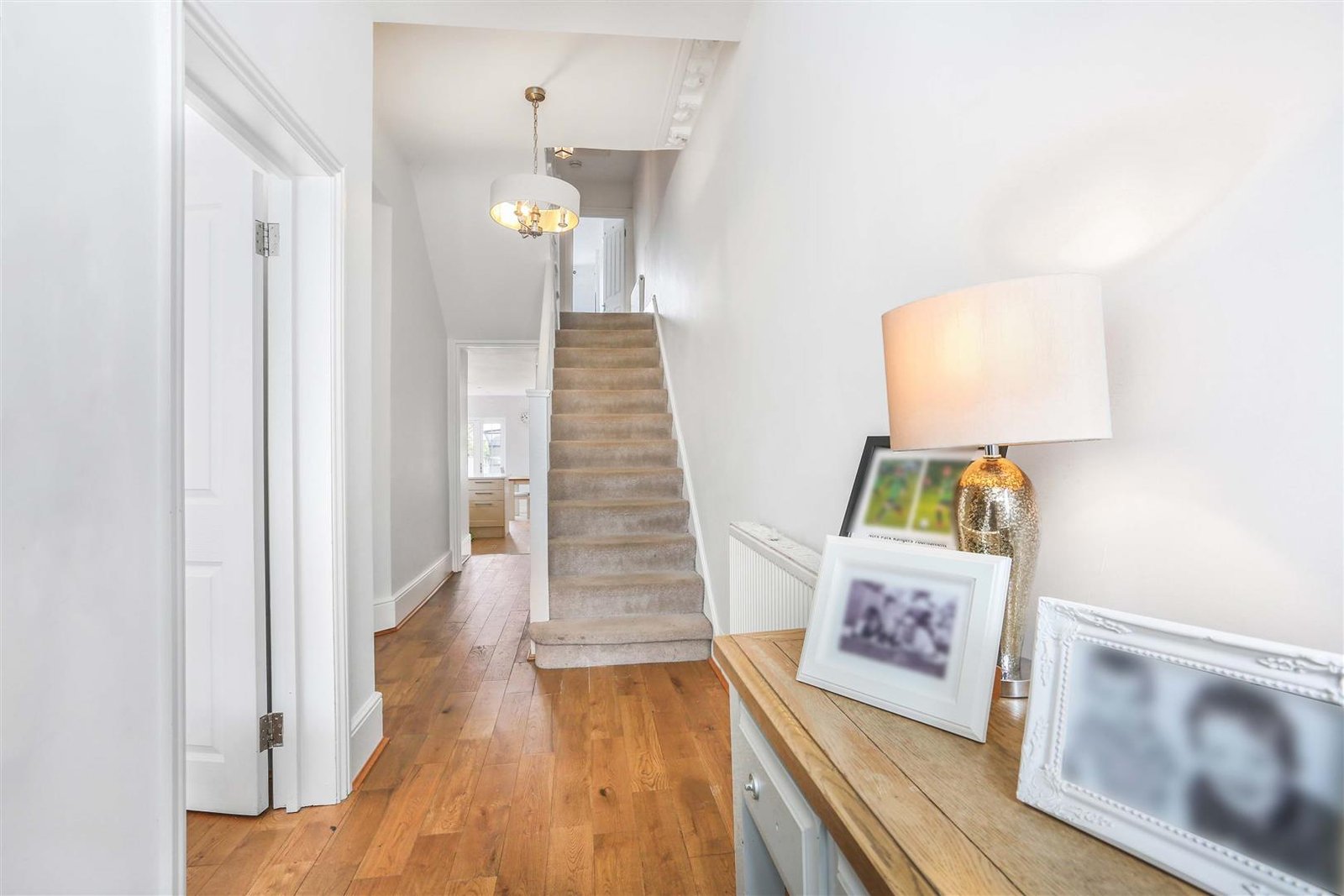 On the ground floor you have two great sized separate reception rooms, a modern fitted kitchen with built-in appliances and breakfast bar extended with dining area that leads to a private decked and grassed garden. You also have a basement with high-class bathroom with walk-in shower and free-standing bathtub.