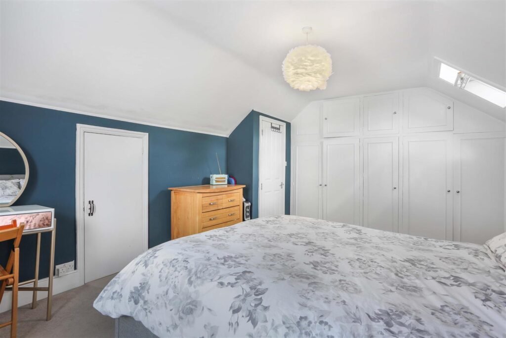 The loft has been extended to create a spacious master bedroom with built in wardrobes and ample eave storage.