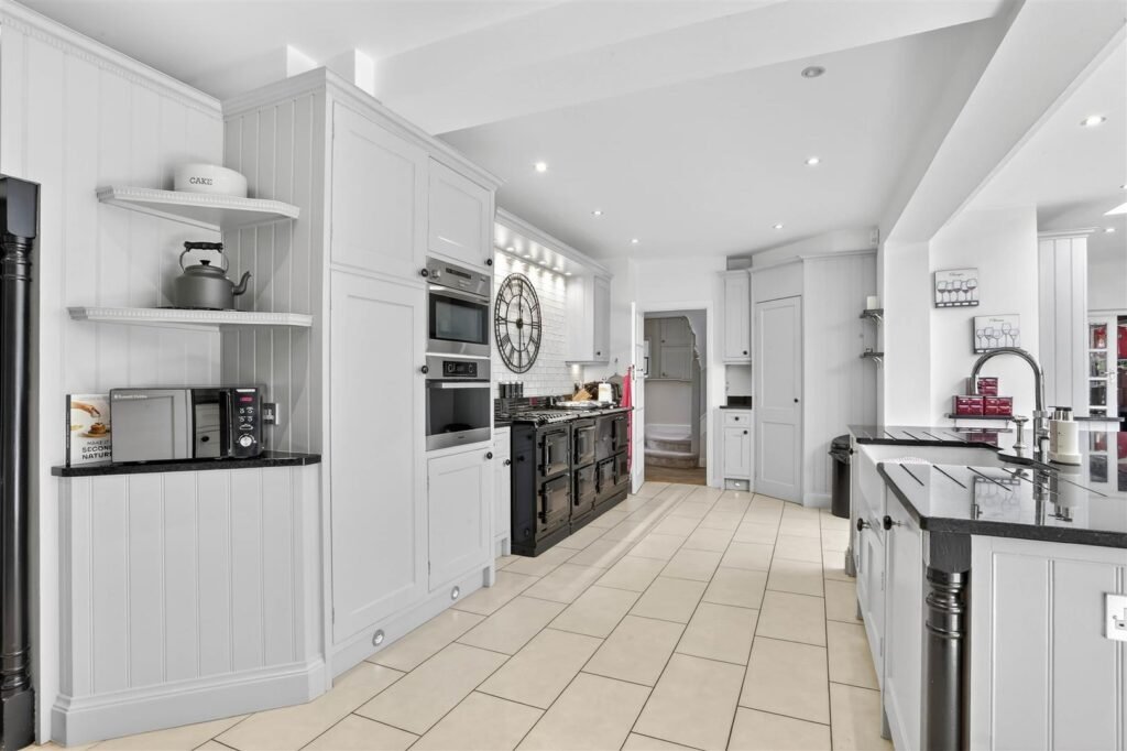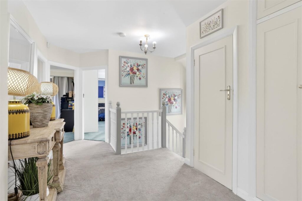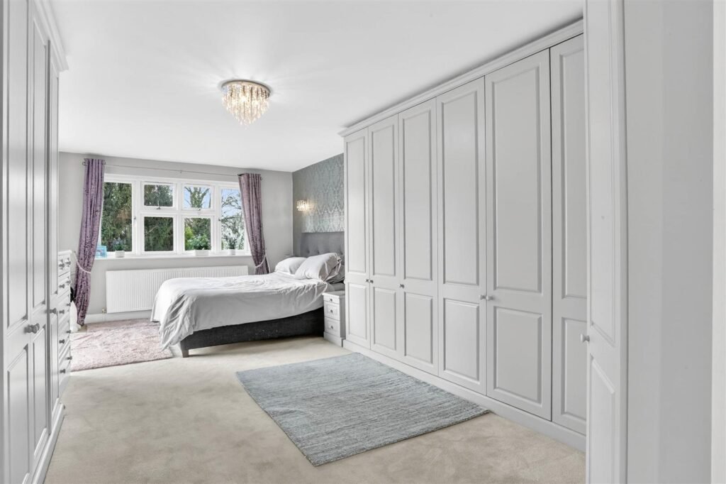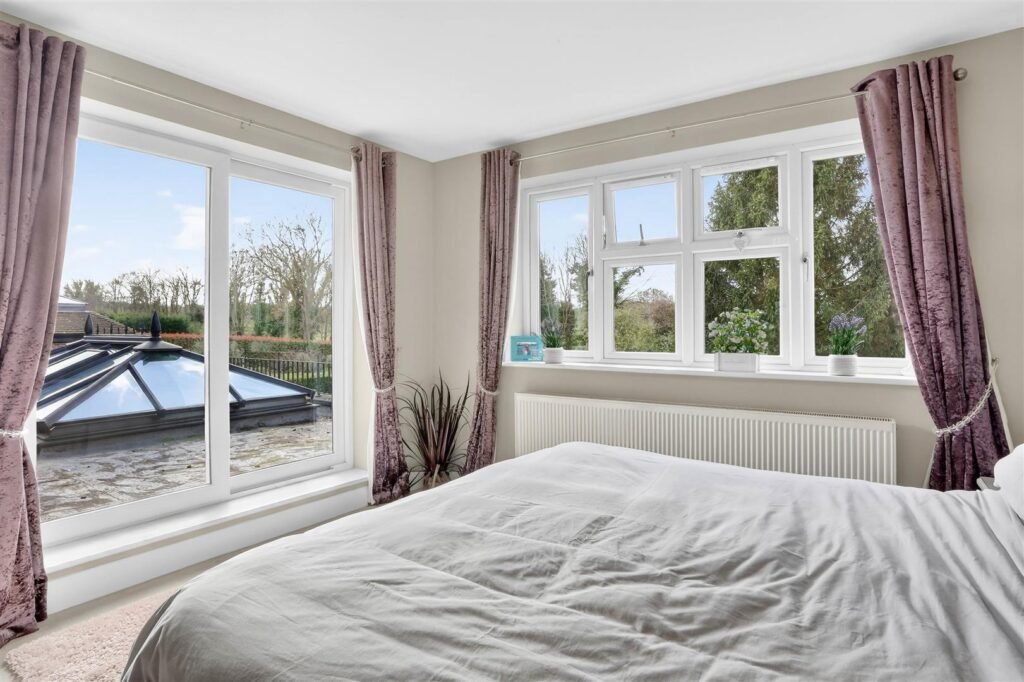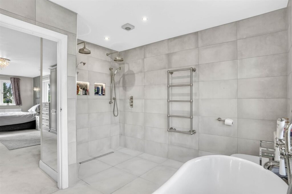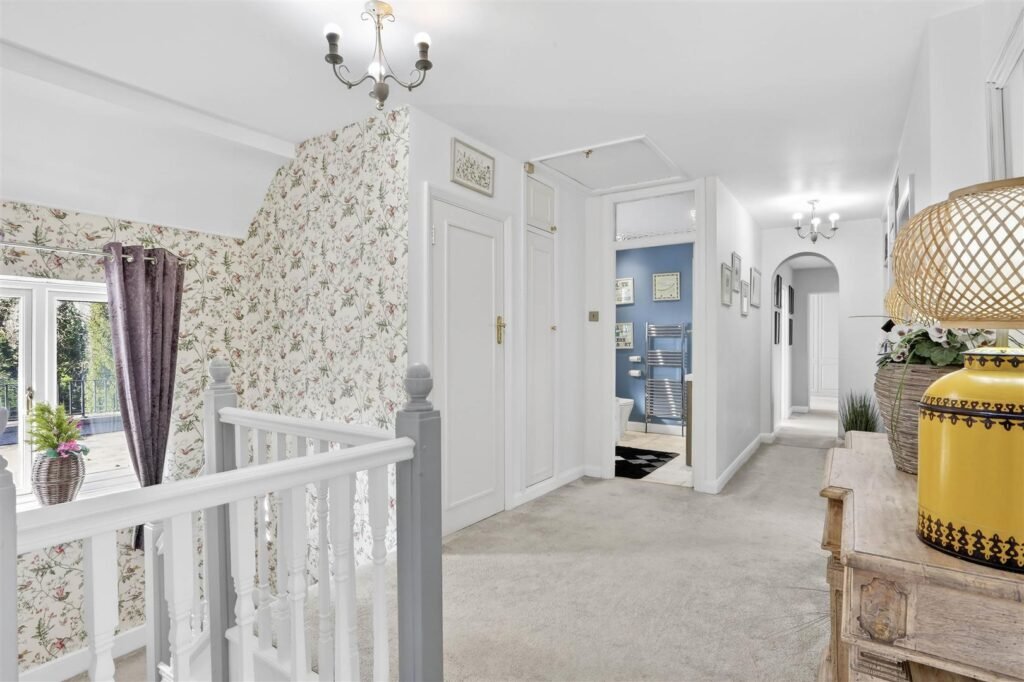 Upstairs, the property offers five well-proportioned bedrooms, including a principal suite with dressing room and en-suite facilities. The remaining bedrooms are served by a family bathroom and separate shower room, creating comfortable accommodation for larger families or visiting guests.