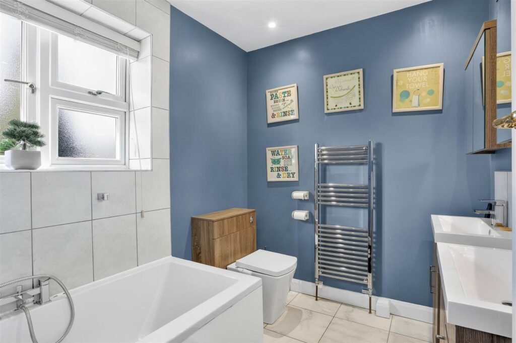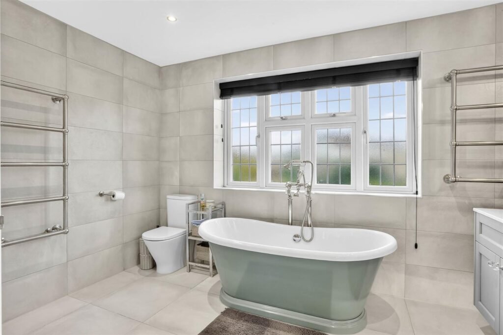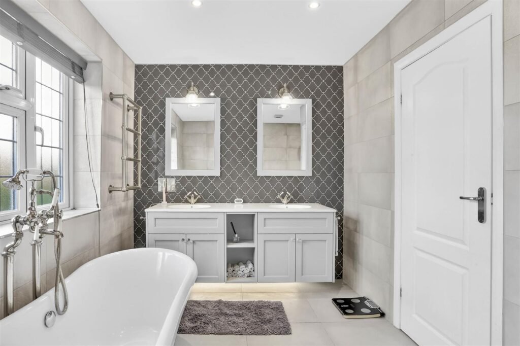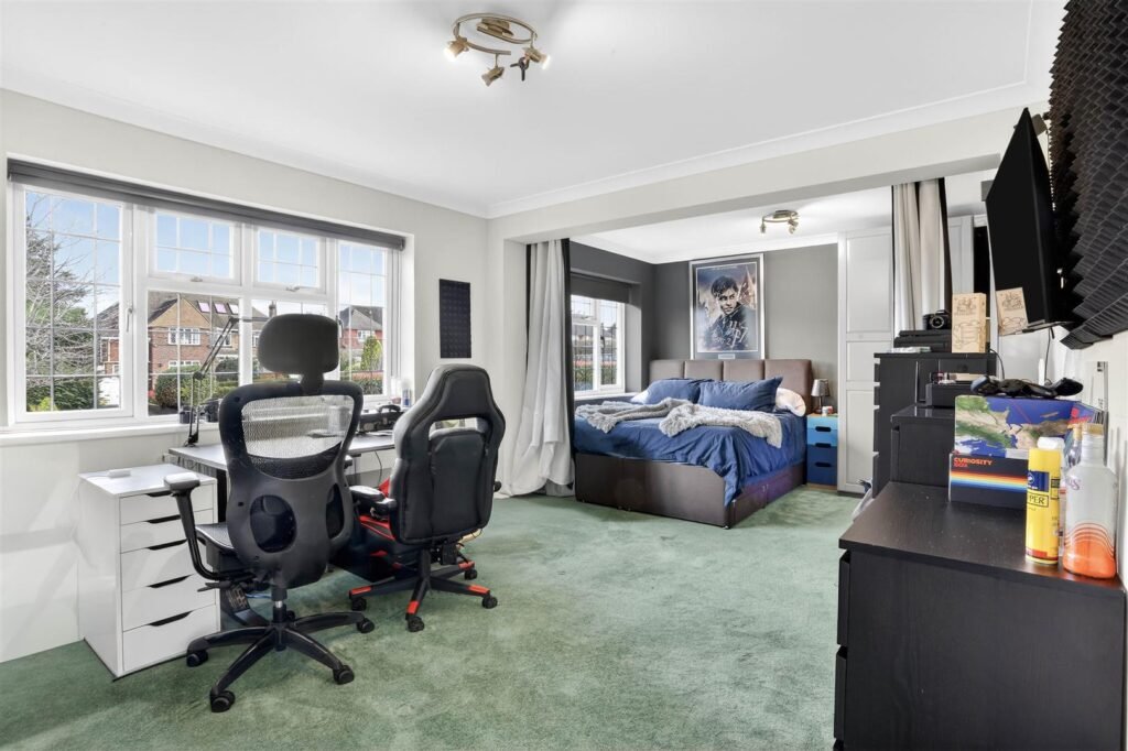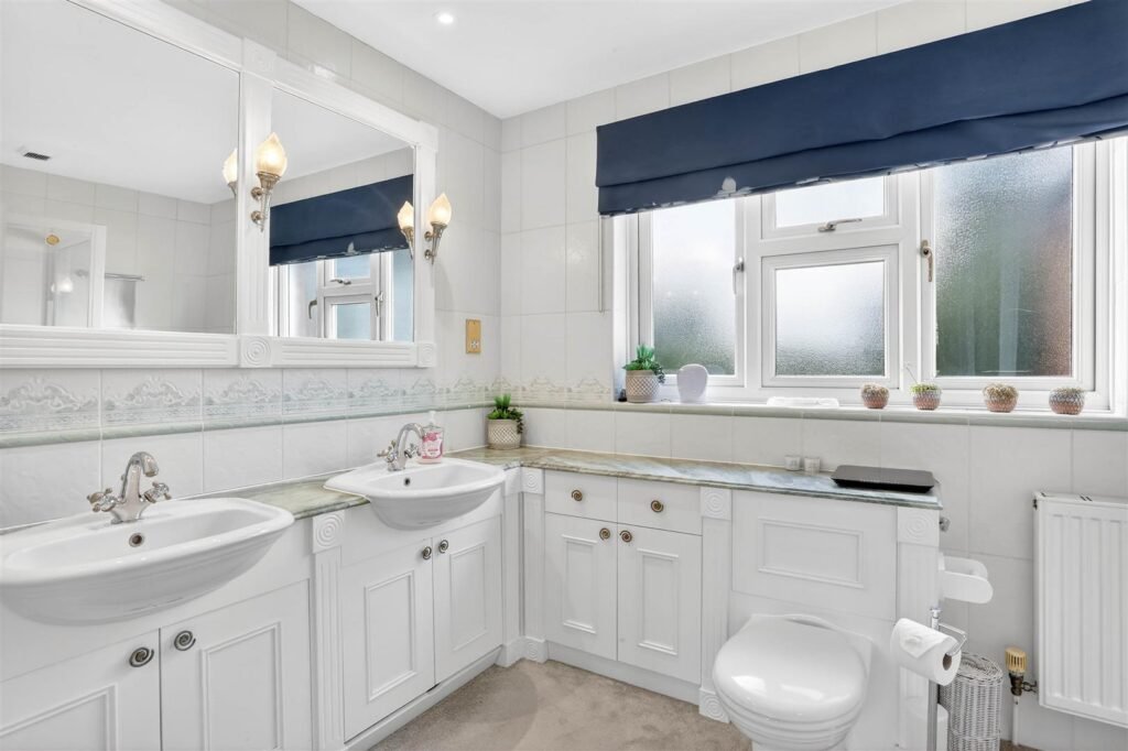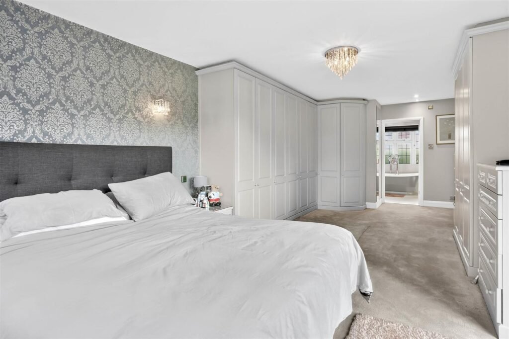 Upstairs, the property offers five well-proportioned bedrooms, including a principal suite with dressing room and en-suite facilities. The remaining bedrooms are served by a family bathroom and separate shower room, creating comfortable accommodation for larger families or visiting guests.