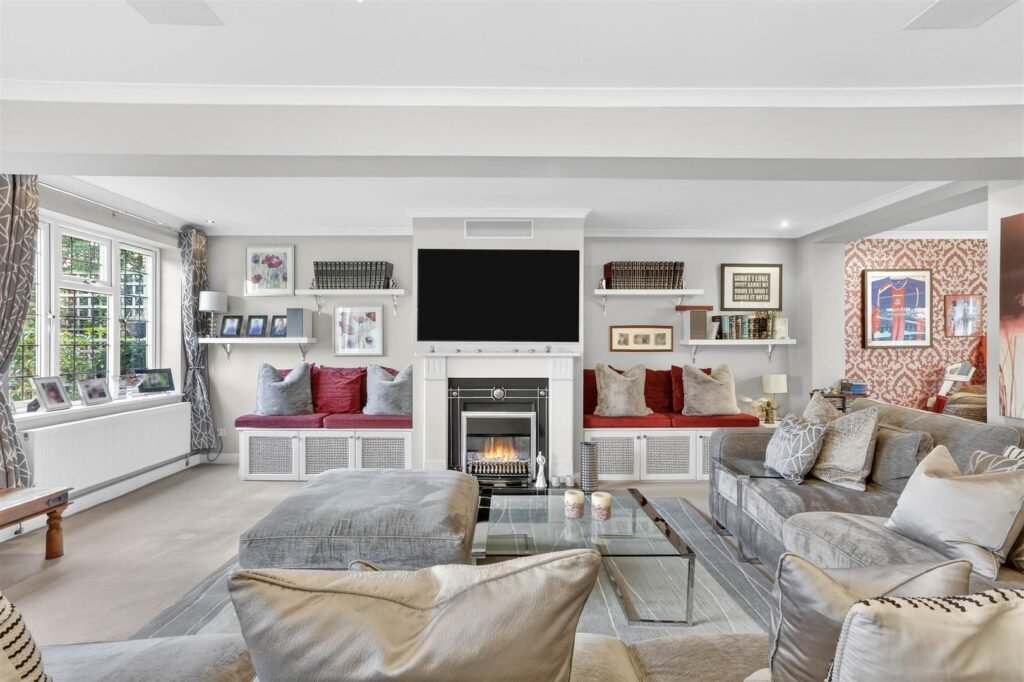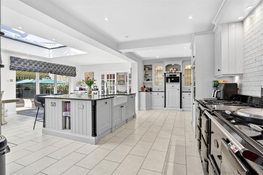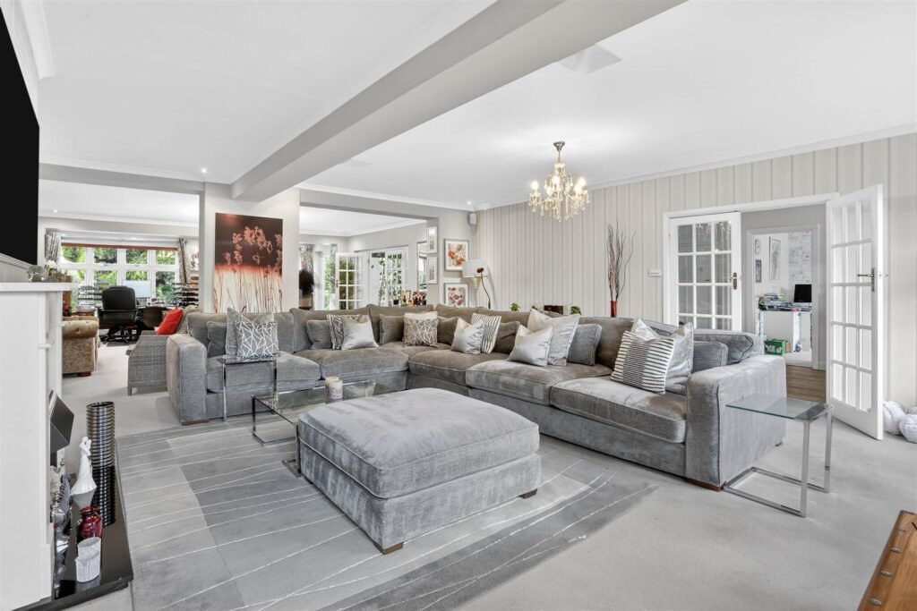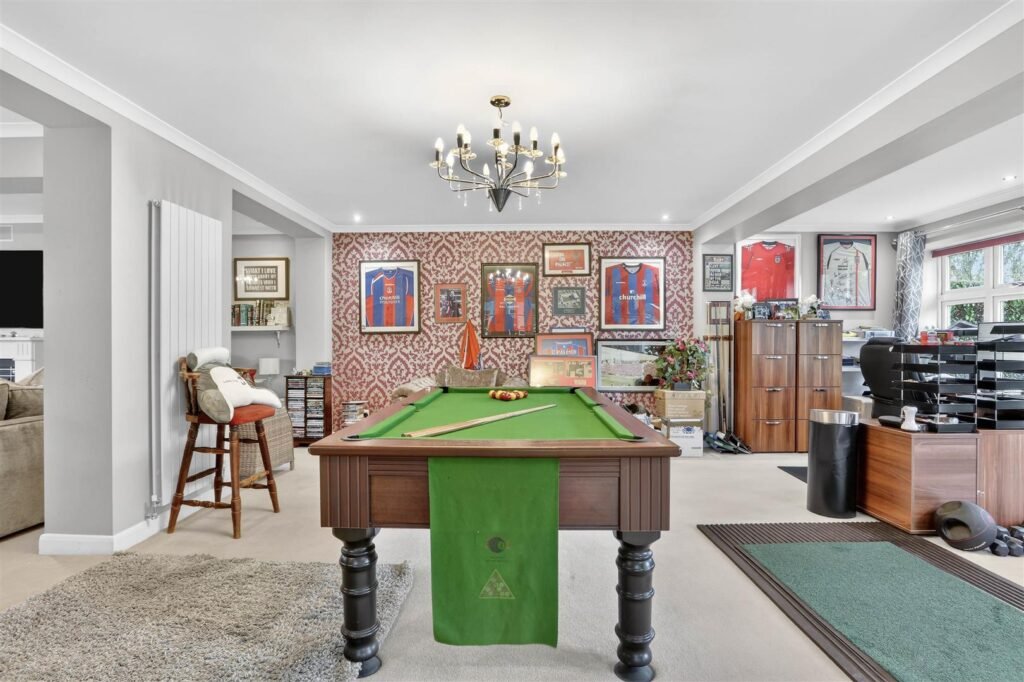 This substantial home offers expansive and well-balanced accommodation, perfectly suited to modern family living. The ground floor features multiple reception areas including a generous reception room, a spacious family room and a further reception room, providing excellent flexibility for both formal entertaining and everyday family life. The heart of the home is a stunning open-plan kitchen and dining room, offering an exceptional space for socialising and family gatherings, complemented by a separate utility room for added practicality. A study to the front of the property provides an ideal work-from-home space.