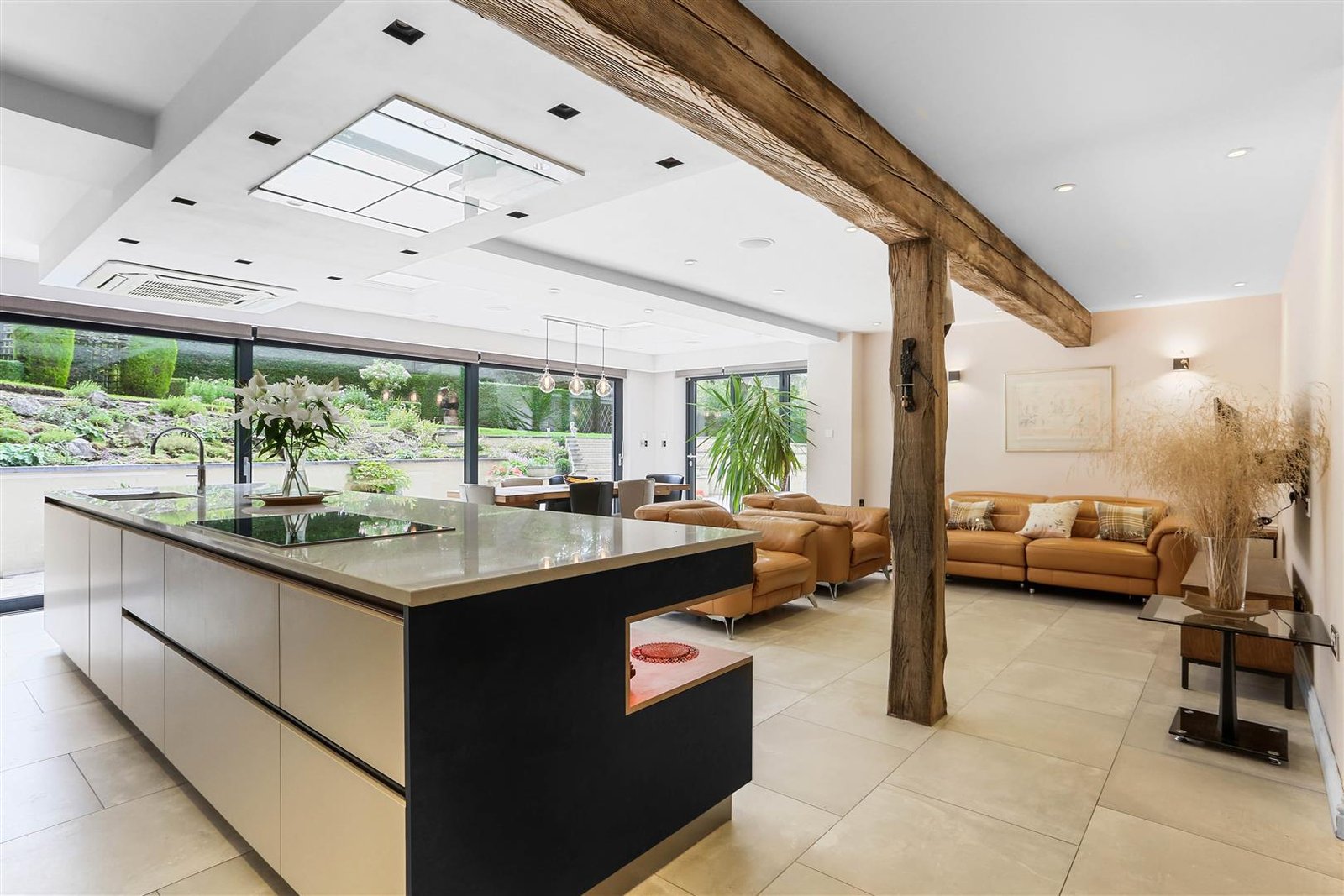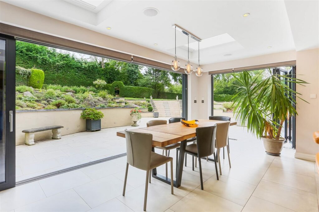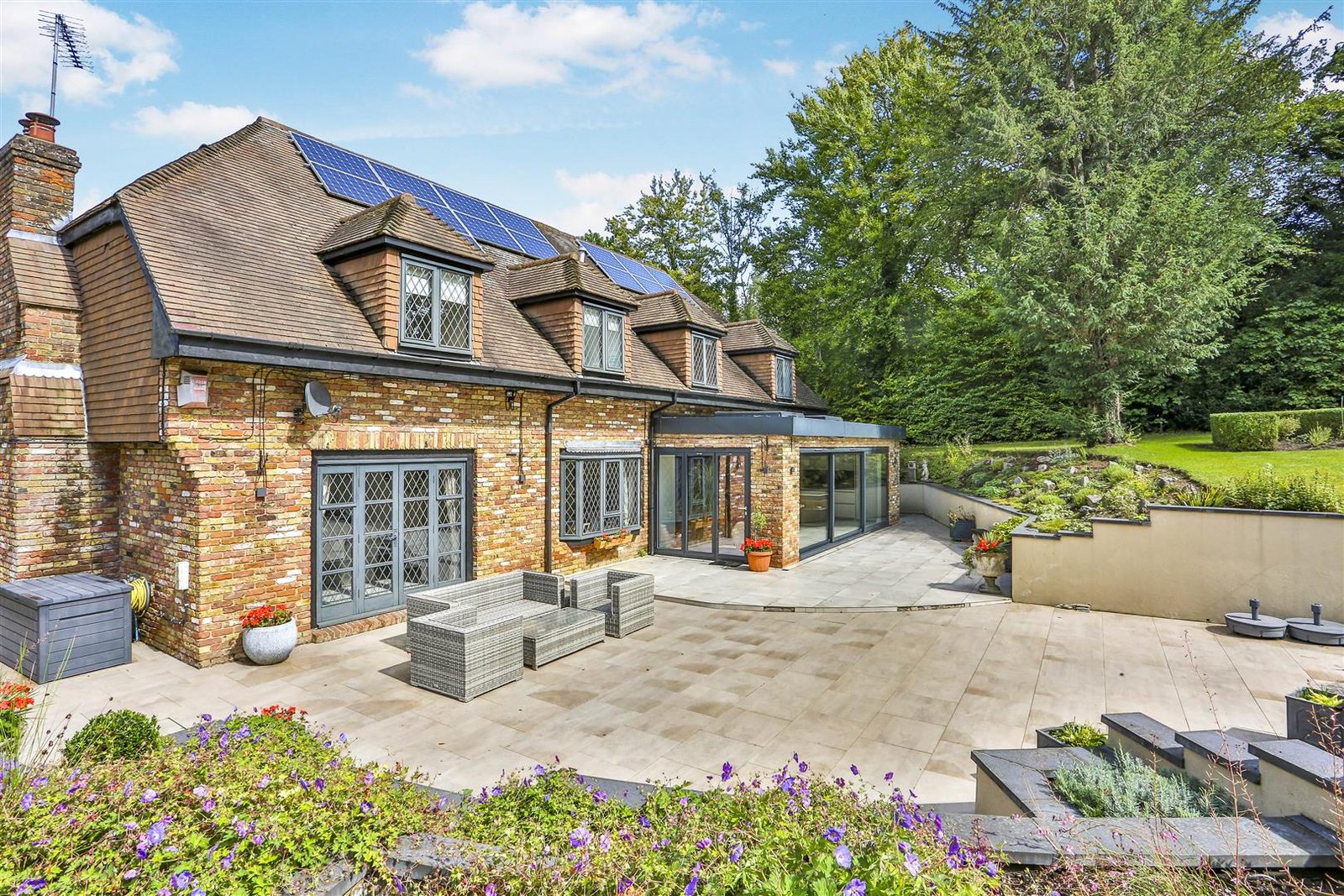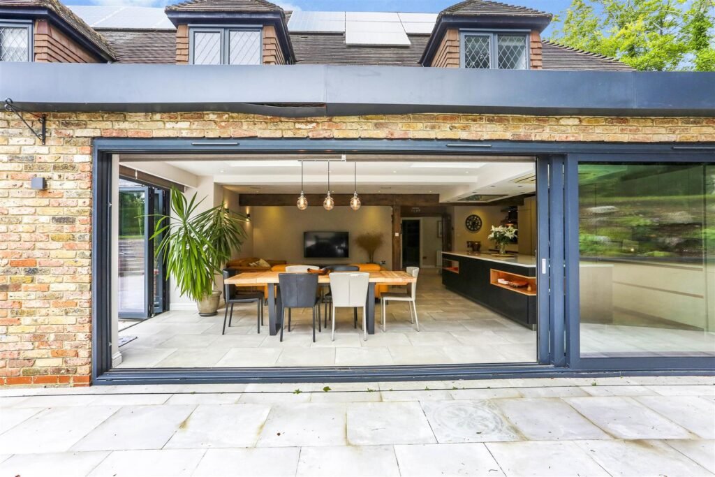 Built around 1985, the property boasts a generous layout, featuring an absolutely stunning modern kitchen/diner with panoramic patio doors leading out to its beautiful, tiered gardens with a plot measuring approximately 0.69 acres (according to surrey interactive maps). In total there are four well-appointed reception rooms that provide ample space for both relaxation and entertaining.