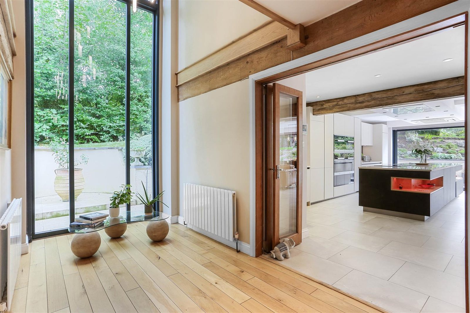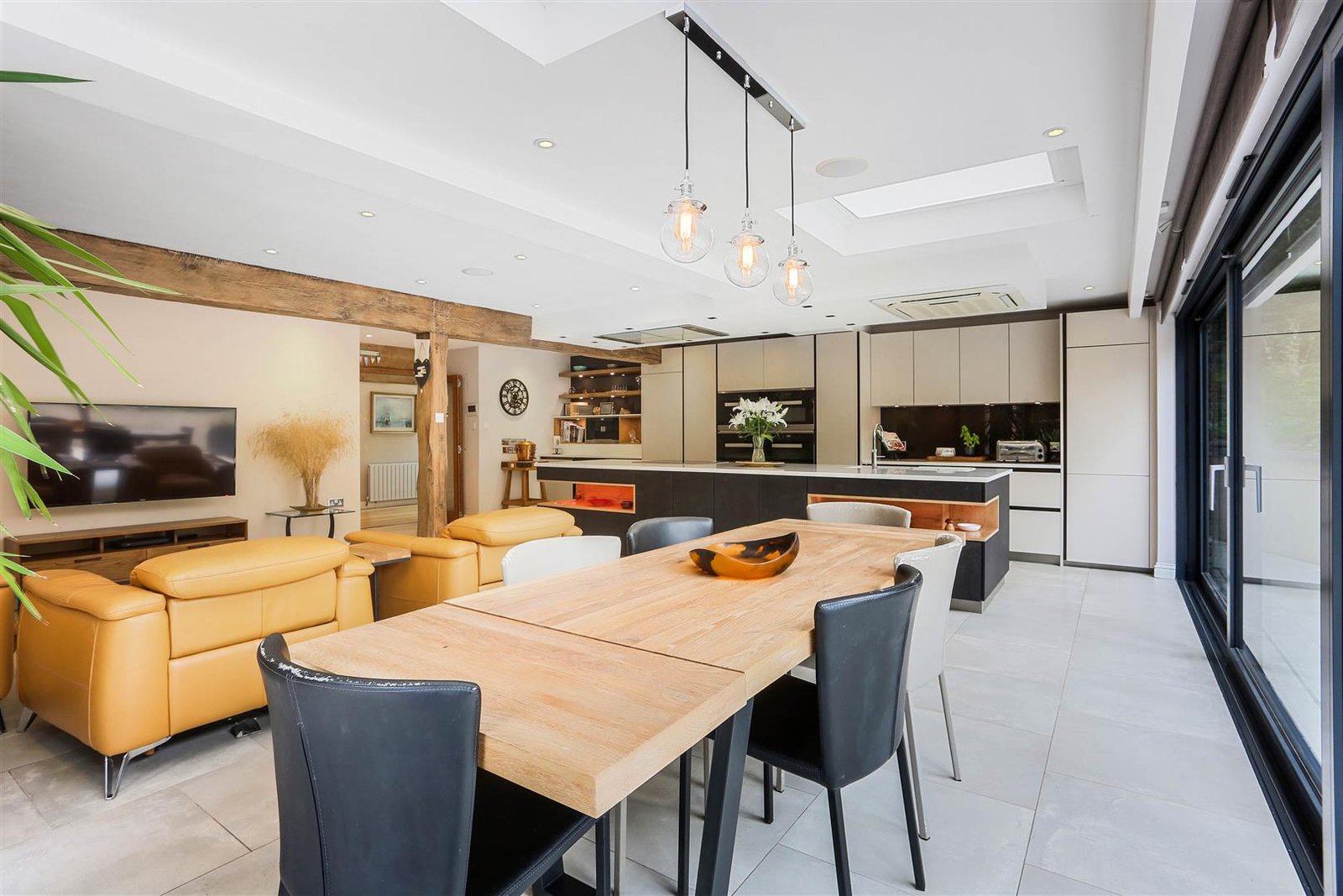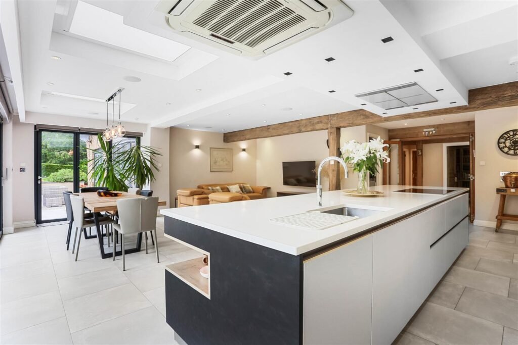 Built around 1985, the property boasts a generous layout, featuring an absolutely stunning modern kitchen/diner with panoramic patio doors leading out to its beautiful, tiered gardens with a plot measuring approximately 0.69 acres (according to surrey interactive maps). In total there are four well-appointed reception rooms that provide ample space for both relaxation and entertaining.