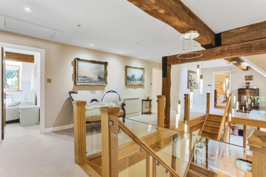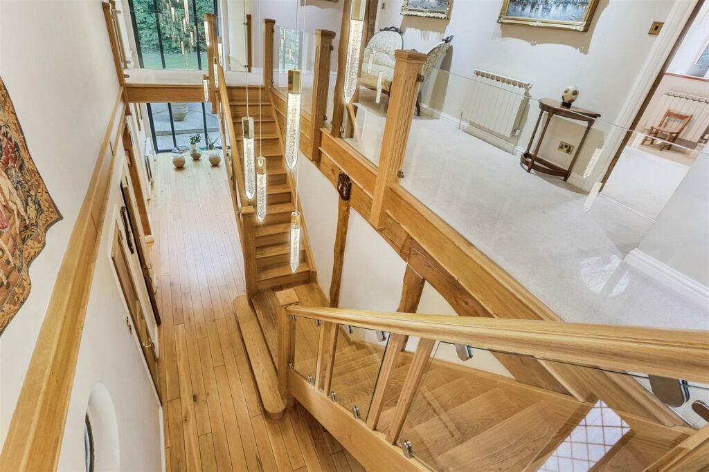 Another stand out feature is the dual staircase which leads you up to a superb landing with access to six spacious bedrooms, four of which offer ensuite facilities which ensures that everyone has their own private space, enhancing the convenience and comfort of daily living.