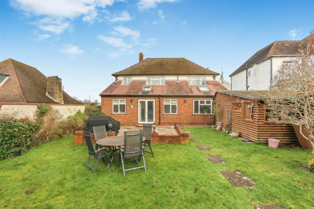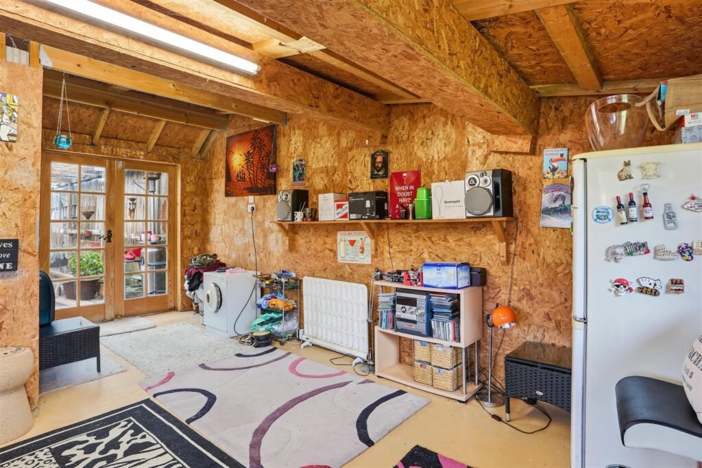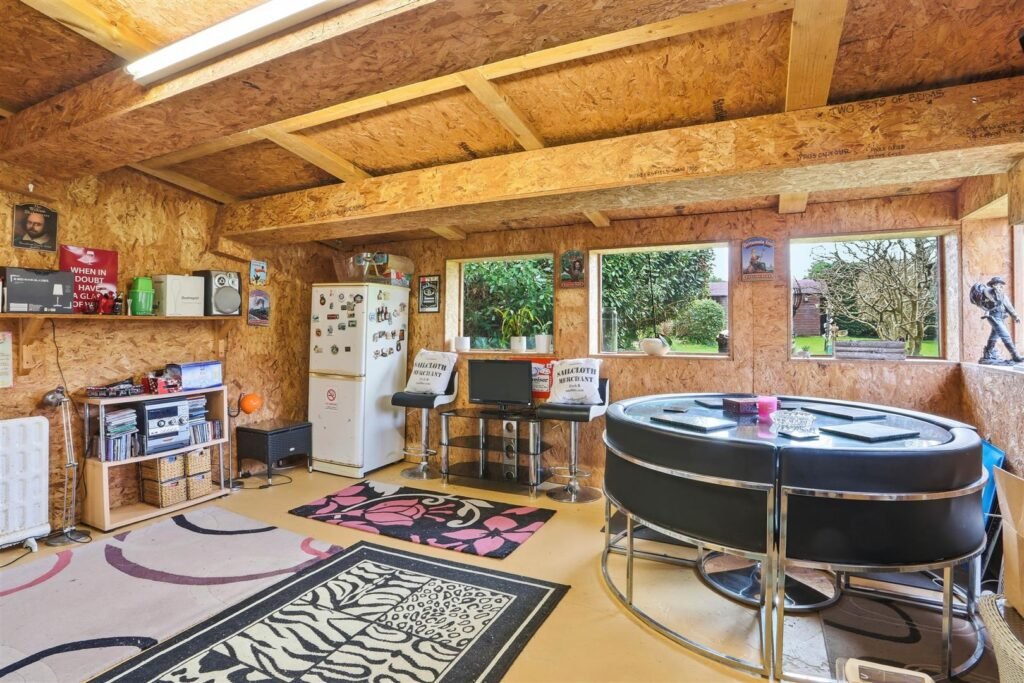 Externally, the property benefits from a substantial rear garden backing directly onto a nature reserve, offering a wonderful sense of privacy and uninterrupted green outlooks. The garden provides excellent potential for outdoor entertaining and family enjoyment, while a summer house adds valuable additional space, ideal for a home office, studio, or retreat. To the front, there is generous off-street parking and a covered car port.