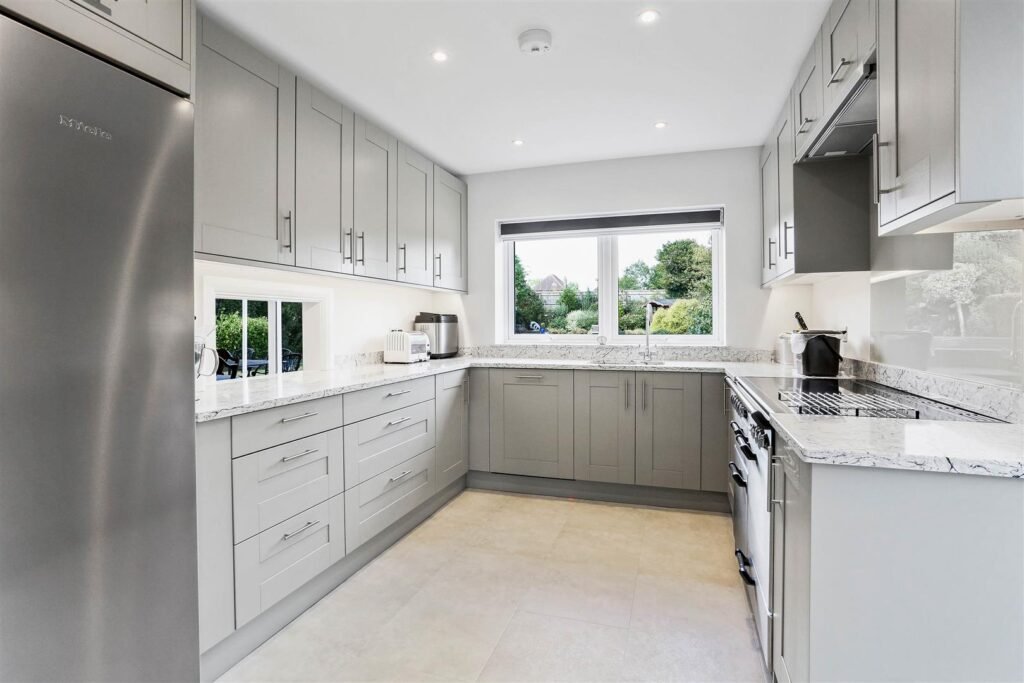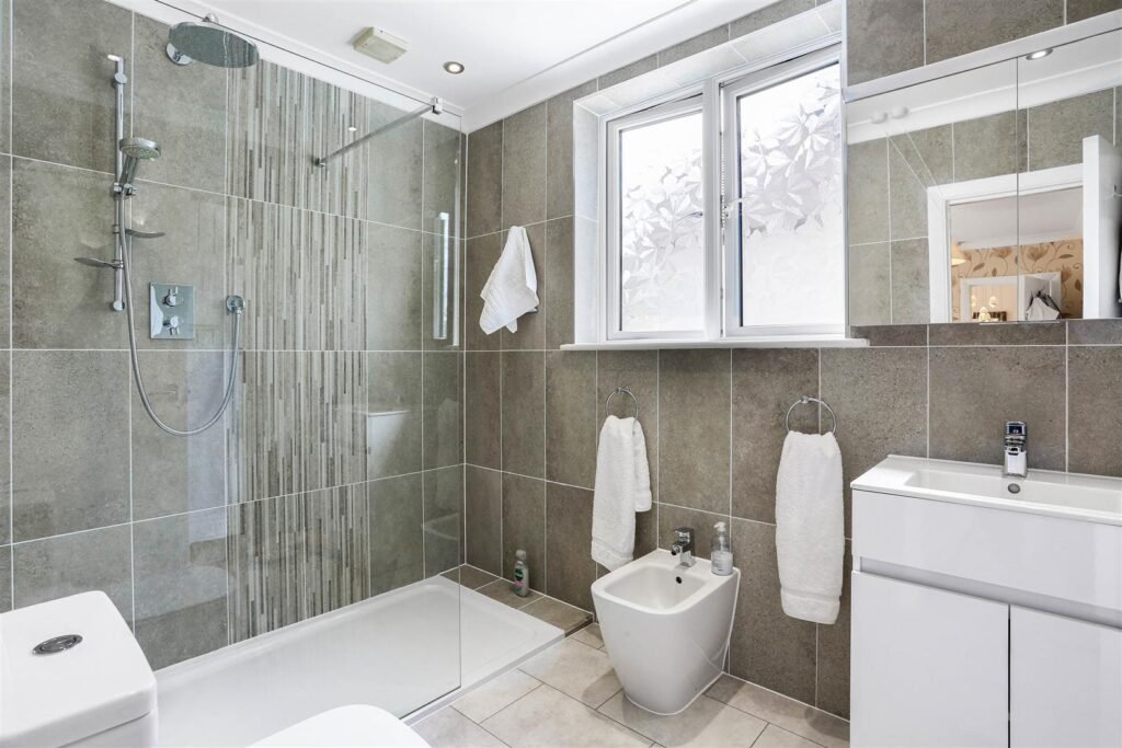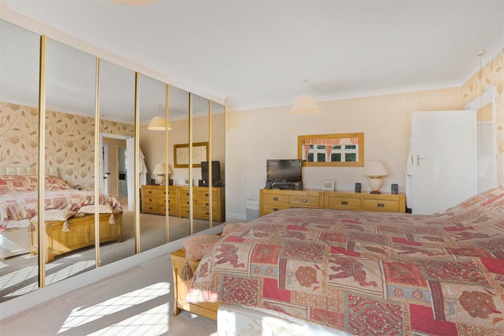 Upstairs, five double bedrooms provide flexible accommodation, with en-suites to three of them, plus a family bathroom. Every room is well-proportioned and filled with natural light, creating a calm and comfortable retreat.