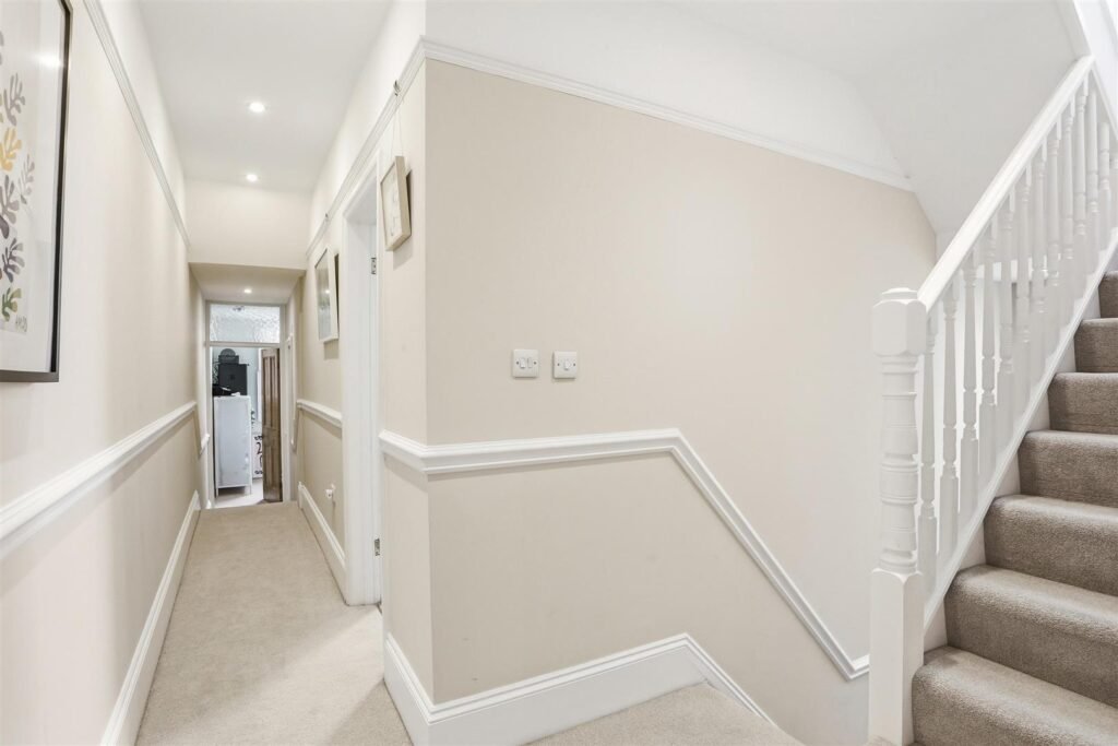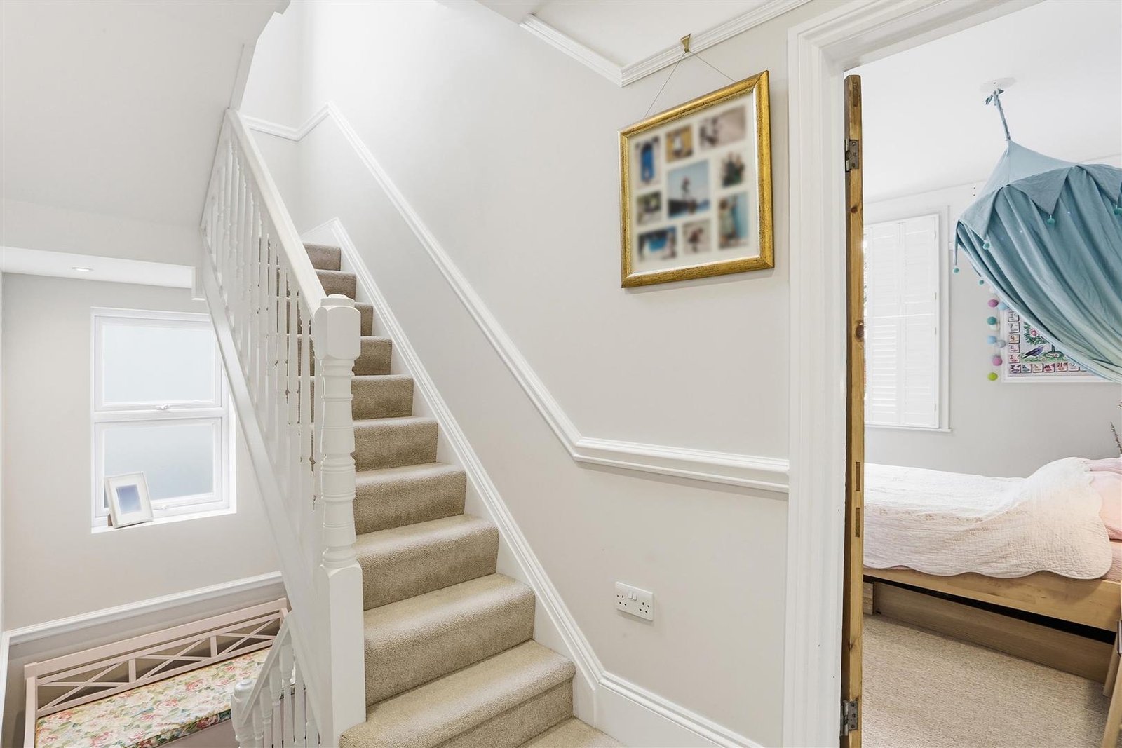 The first floor comprises three bedrooms, including a generous double, alongside a well-appointed family bathroom. The second floor offers two additional bedrooms, with the principal suite benefitting from a dressing room and en-suite, enjoying far-reaching views across West London.