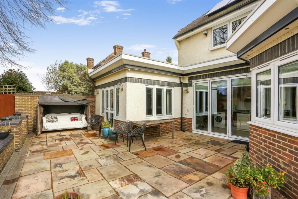 Externally, the property benefits from a substantial private rear garden, offering excellent space for outdoor entertaining and recreation, further enhanced by a brick-built covered BBQ and seating area, creating a superb outdoor entertaining space. To the front, a carriage driveway provides ample off-street parking and access to the garage.