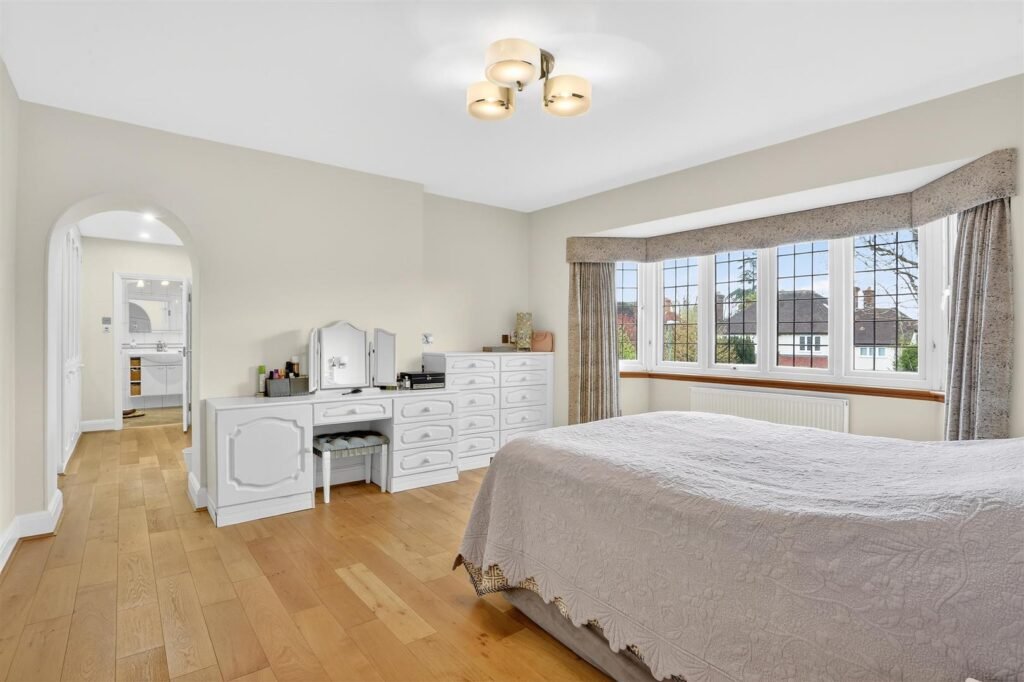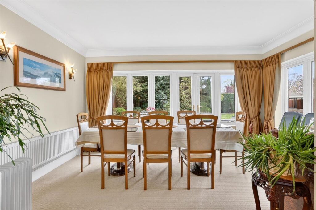 Upstairs, the property offers a range of well-proportioned bedrooms, including a principal suite with dressing room and en-suite. Additional bedrooms are served by a family bathroom and further en-suite facilities, providing comfortable accommodation for larger families.