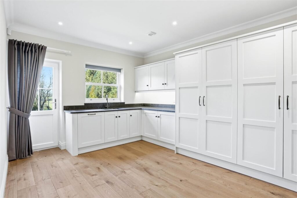 As you step inside, you will be greeted by two inviting reception rooms that showcase the extremely high-quality finishes and fittings throughout the home. The marvellous rear aspect kitchen/dining room offers a tremendous range of high-quality appliances and sweeping satin-granite work surfaces, and opens into a generously appointed utility room which, in turn, connects to the large garage. Each room has been thoughtfully designed to create a harmonious blend of style and comfort, ensuring that every corner of this residence exudes sophistication. Other benefits include under floor heating and air conditioning.
