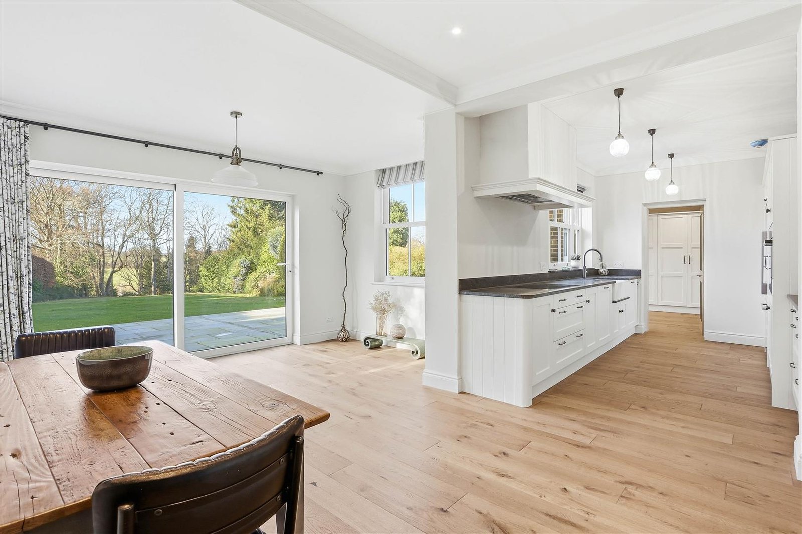As you step inside, you will be greeted by two inviting reception rooms that showcase the extremely high-quality finishes and fittings throughout the home. The marvellous rear aspect kitchen/dining room offers a tremendous range of high-quality appliances and sweeping satin-granite work surfaces, and opens into a generously appointed utility room which, in turn, connects to the large garage. Each room has been thoughtfully designed to create a harmonious blend of style and comfort, ensuring that every corner of this residence exudes sophistication. Other benefits include under floor heating and air conditioning.